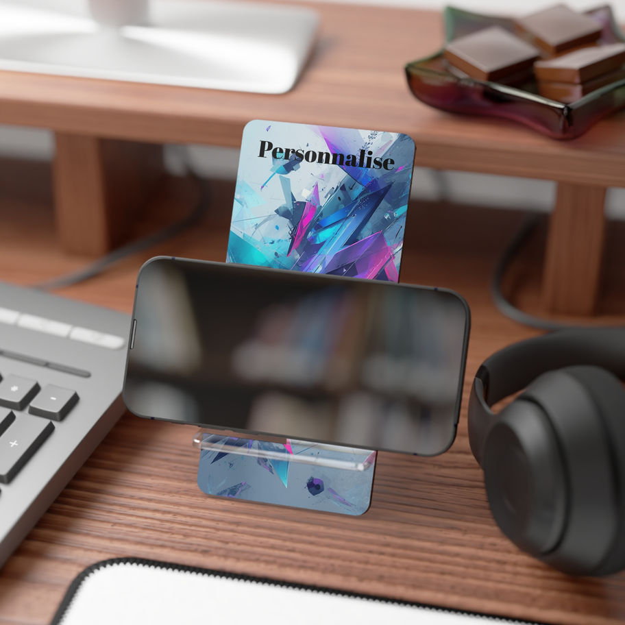 Un support pour smartphone élégant et coloré qui apporte une touche artistique à votre bureau. Le devant en panneau rigide présente des impressions brillantes et éclatantes—des bleus, roses et morceaux de turquoise vifs—tandis qu'une béquille arrière en plastique transparent se replie pour un profil discret. Il maintient votre téléphone en position verticale pour un visionnage mains libres, une consultation au lit ou des appels vidéo rapides. Léger et robuste, sa construction en deux pièces se monte facilement et reste en place lors de l'utilisation quotidienne. Placez-le sur un bureau, une table de chevet ou un espace créatif pour garder votre appareil visible et votre espace inspiré.